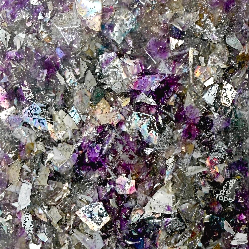Our signature material, RE-CD, is made from 100% recycled CDs (primarily Polycarbonate), whereas our KRUSHED Sheets are generally made from 100% Polypropylene. These are both hard plastics that bring a unique aesthetic to our furniture.