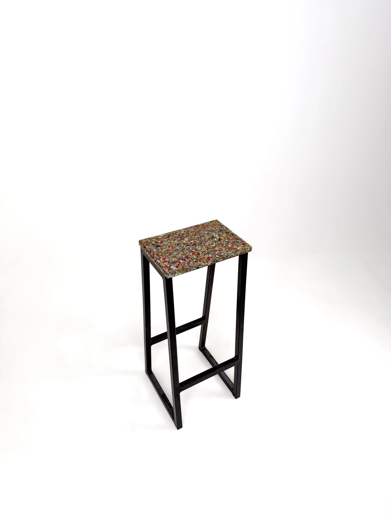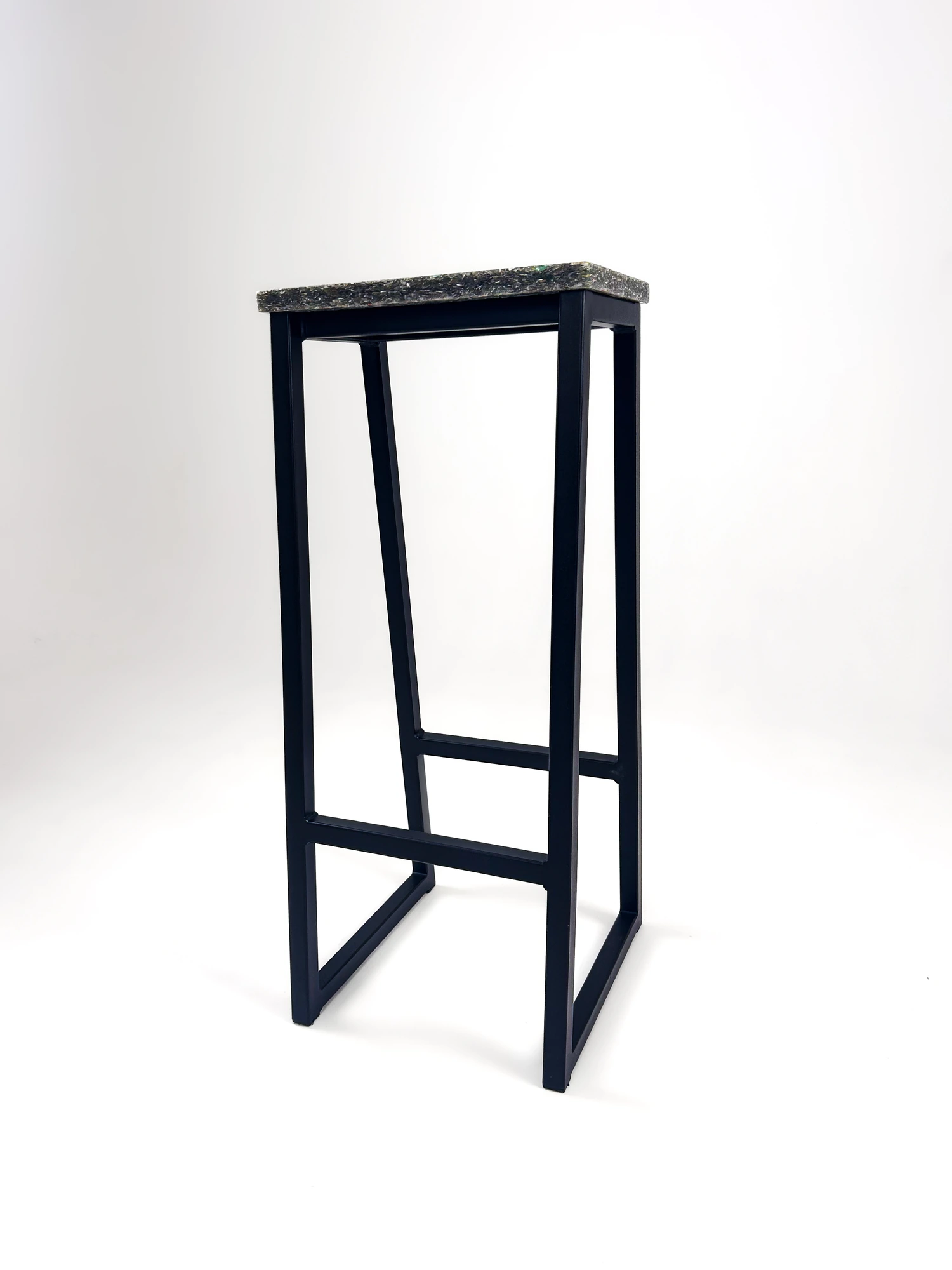 This angled rectangular stool not only transforms waste into a unique conversation starter but also features a robust steel frame that ensures durability and elegance for both commercial and residential spaces.
